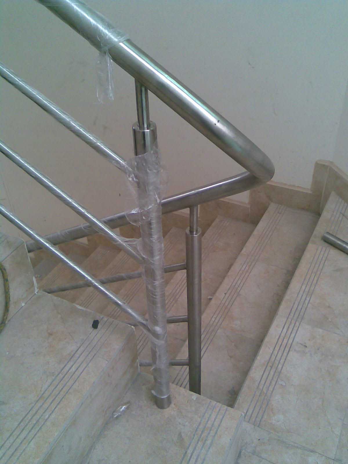 Tambi’en instalamos en obra. Estos pasamanos de acero inoxidable fueron hechos en taller e intalados en sitio en un conjunto habitacional
